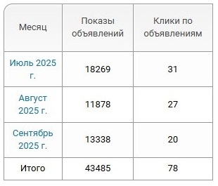 Статистика объявлений